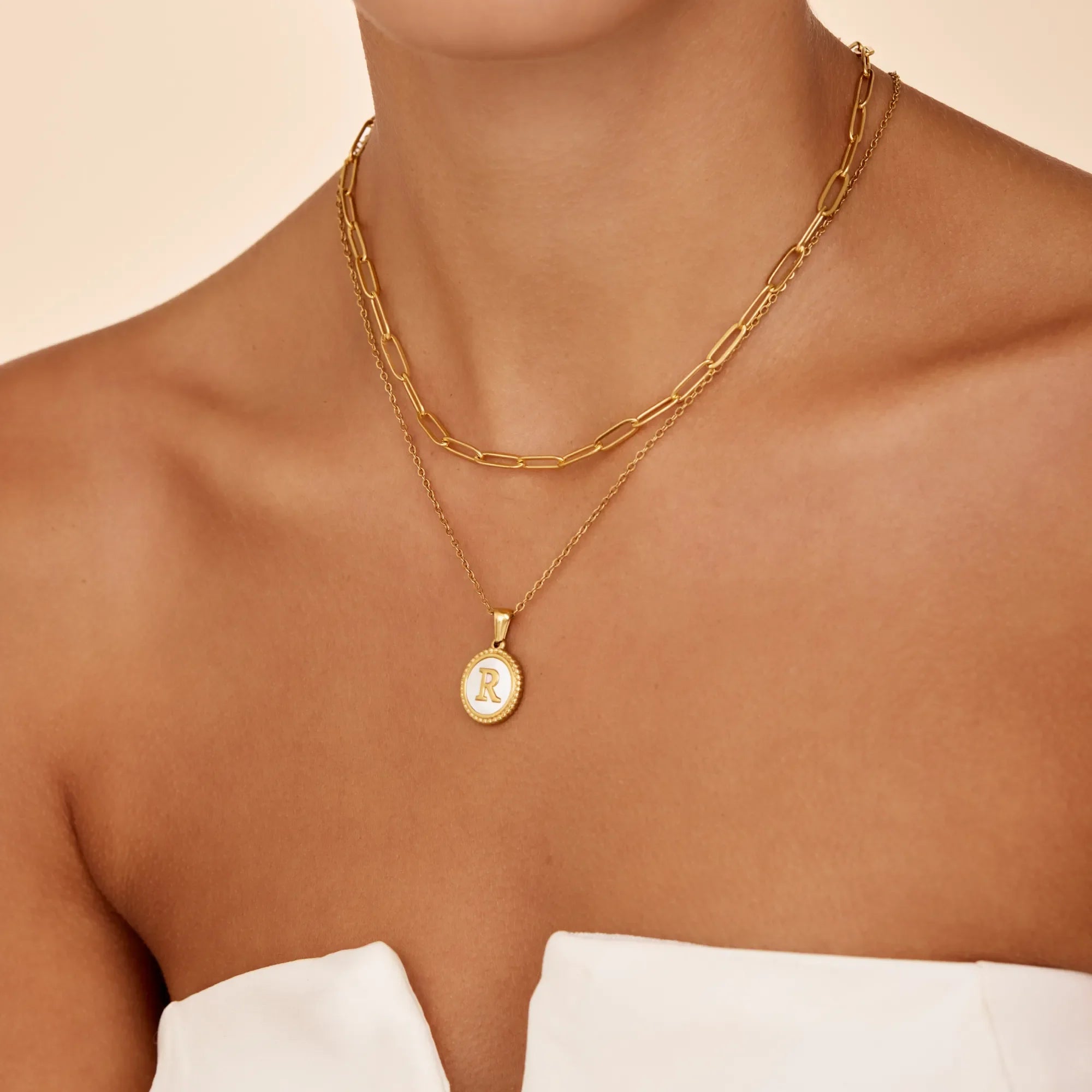 Mother Of Pearl Initial Pendant Necklace